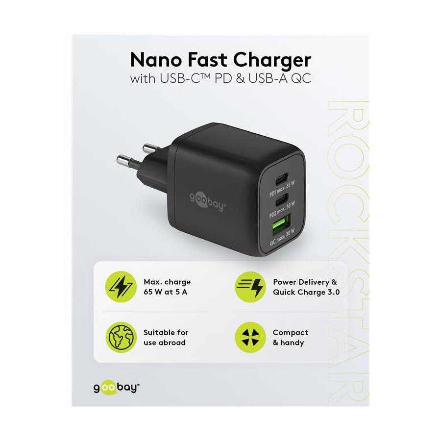 Chargeur Rapide Multiport USB-C™ PD GaN Nano (65 W) noir 2x ports USB-C™