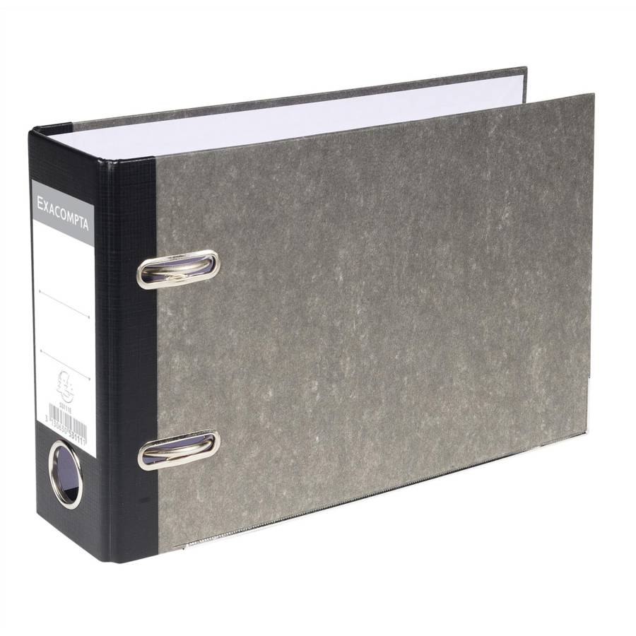 Classeur à levier papier marbre gris dos de 70mm - A5 horizontal. OEillet de préhension et renforts métalliques à la base du classeur pour éviter une usure prématurée en position verticale. Etiquette de dos.