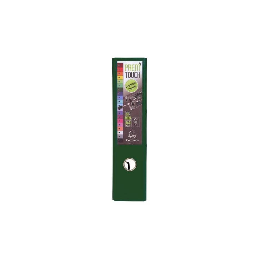 Classeur EXACOMPTA à levier Couleur verte foncée Dos de 80mm Format A4 2 anneaux Personnalisable avec le grand porte-étiquette de couverture Oeillet de préhension Le Classeur à levier Prem'Touch est équipé d'une nouvelle mécanique plus robuste. Résistante, elle est aussi ergonomique grâce à son bouton poussoir. Le classeur Prem'Touch possède des renforts en coin pour durer. A4 maxi, il s'adapte à tout type de classement. En carton recouvert polypropylène, Prem'Touch est certifié FSC®. Pour une qualité au naturel…
