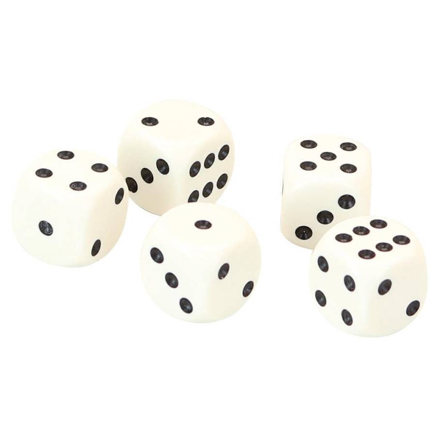 Accessoires pour jeux de société. Coffret de 5 dés (16 mm) - dimensions du coffret : 8,5 x 2,3 x 2 cm - A partir de 3 ans