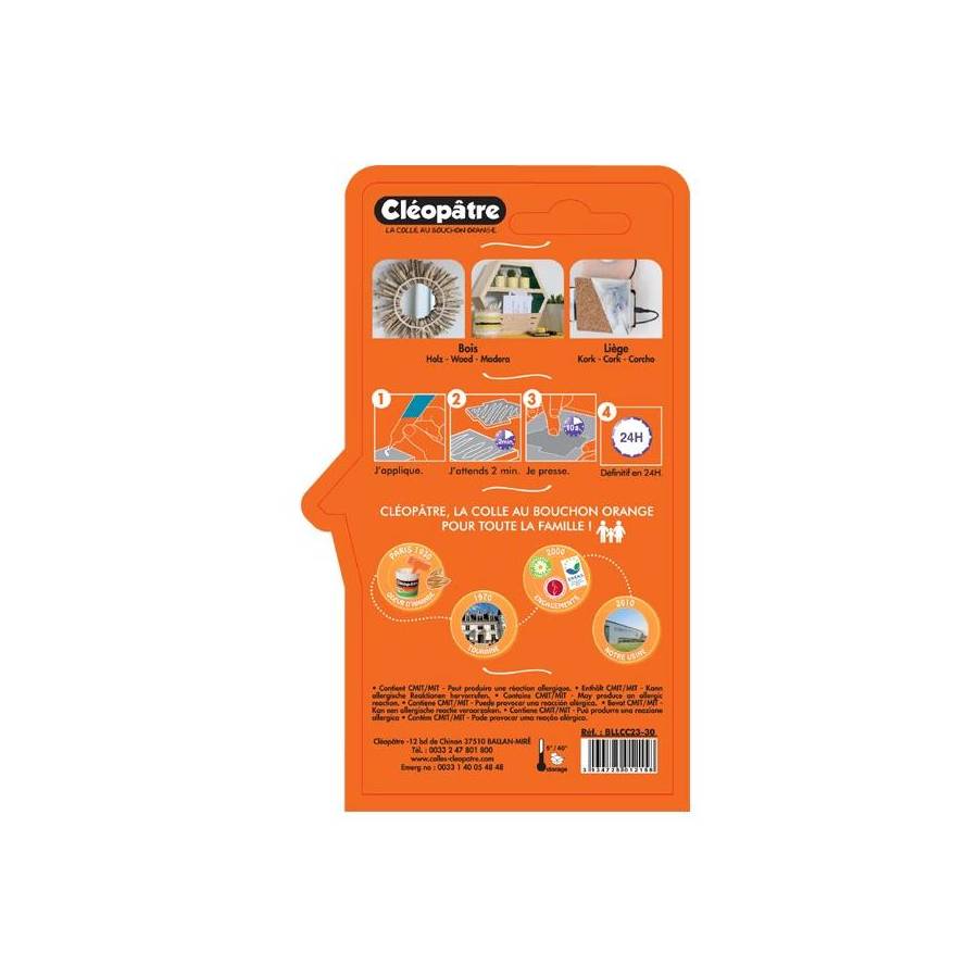 Voir plusA chaque technique sa colle, c'est pour cette raison que nous avons développé les Cléo'TECH ! Chaque colle répondra à votre besoin de collage sur différentes familles de matériaux (collage fort, matériau léger...) Pour cette nouvelle gamme, nous avons travaillé sur la viscosité de la colle afin de rendre l'application plus facile. Sa consistance est épaisse pour ne pas couler trop vite et elle peut aussi être appliquée au pinceau. La colle Bois est spécialement conçue pour coller le bois et le liège. Elle offre un maintien immédiat et un collage résistant. Les Cléo'TECH ne contiennent pas de solvant et sont donc sans odeur, contrairement à d'autres colles techniques. Elles peuvent donc être utilisées dès 6 ans.