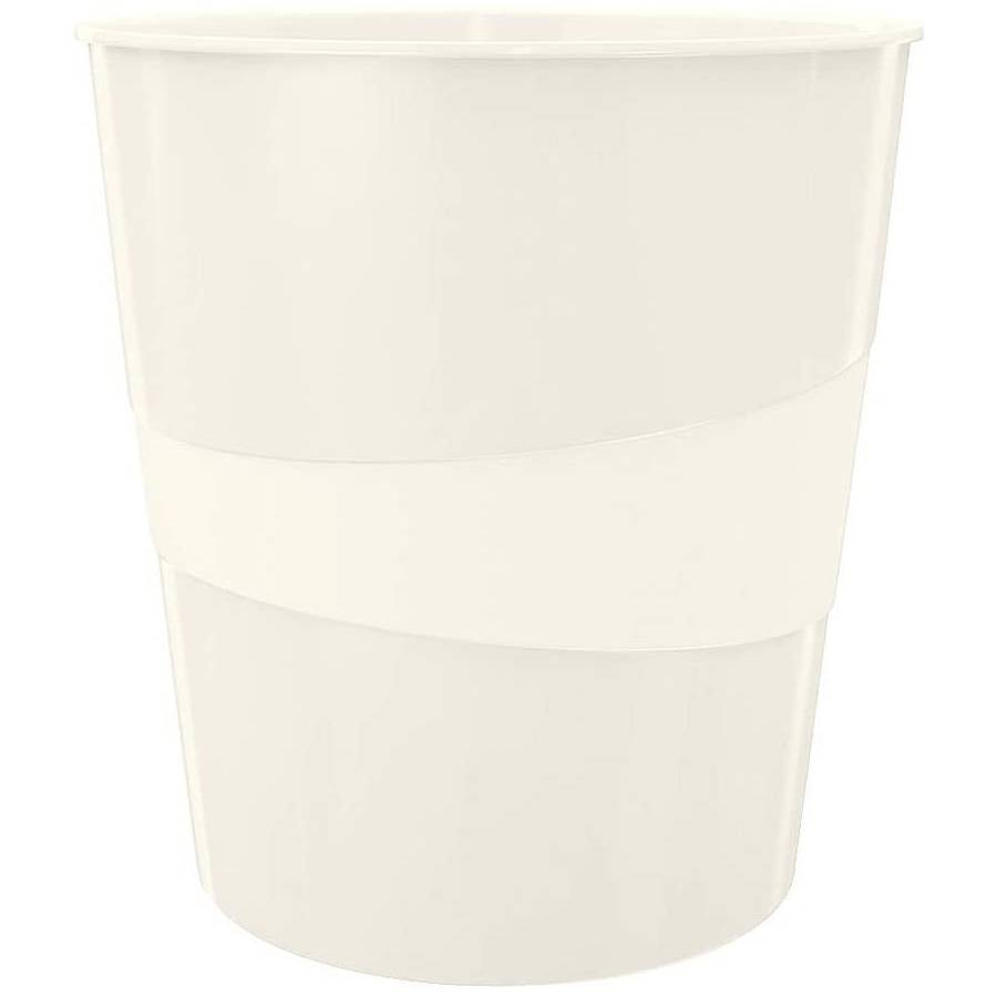 LEITZ Corbeille à papier Wow capacité 15L en polypropylène - D29 x H32,4 cm blanc brillant