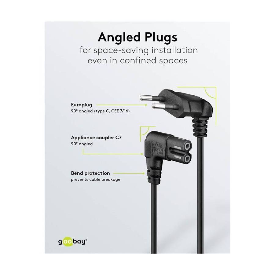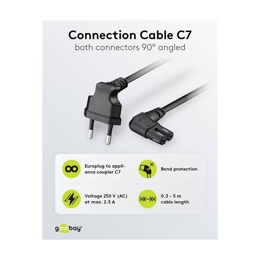 Longueur de câble : Europlug (type C, CEE 7/16) 90° > prise C7 90°
