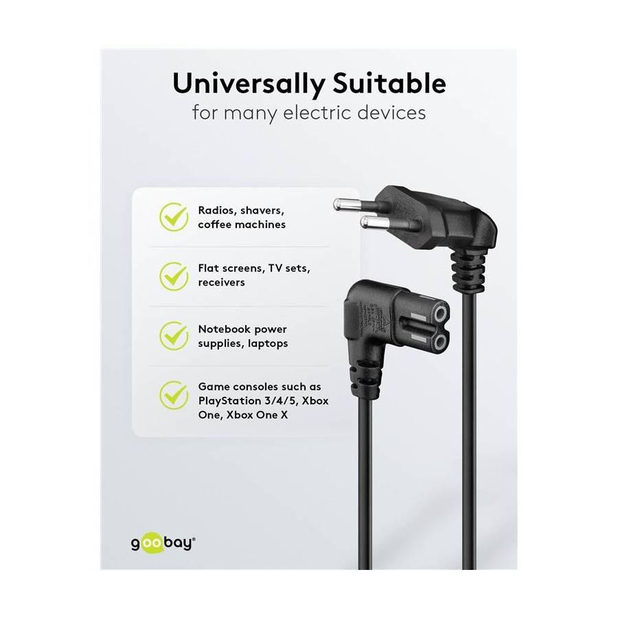 Câble d'alimentation à 2 broches avec prise C7 pour le raccordement aux nombreux petits appareils électriques