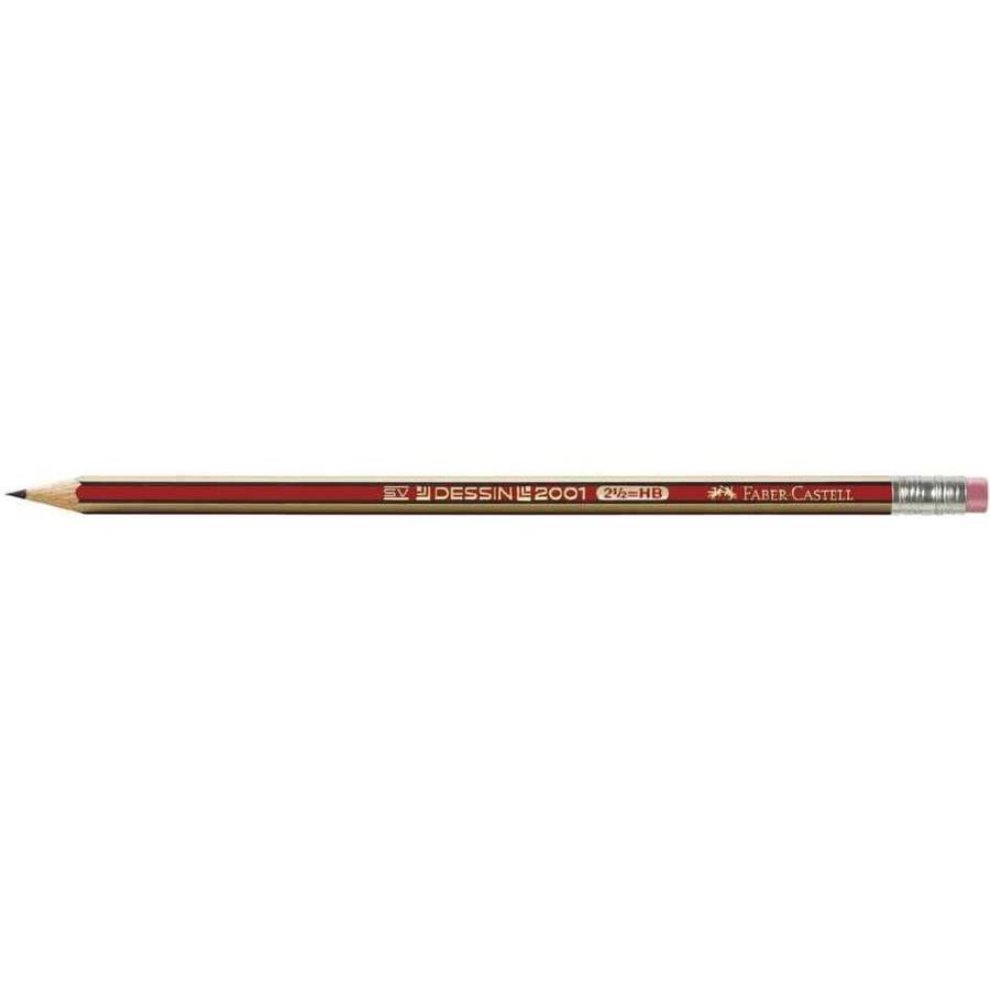 FABER-CASTELL Crayon DESSIN 2001, degré de dureté: HB Epaisseur des mines: env. 2 mm, verni rouge/or, hexagonal, avec gomme Incassable grâce à un collage spécial