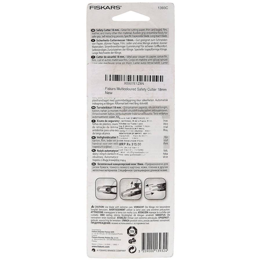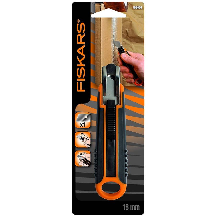 FISKARS Cutter de sécurité - Lame trapézoidale spécifique 18mm - Lame ajustable - Auto rétractable