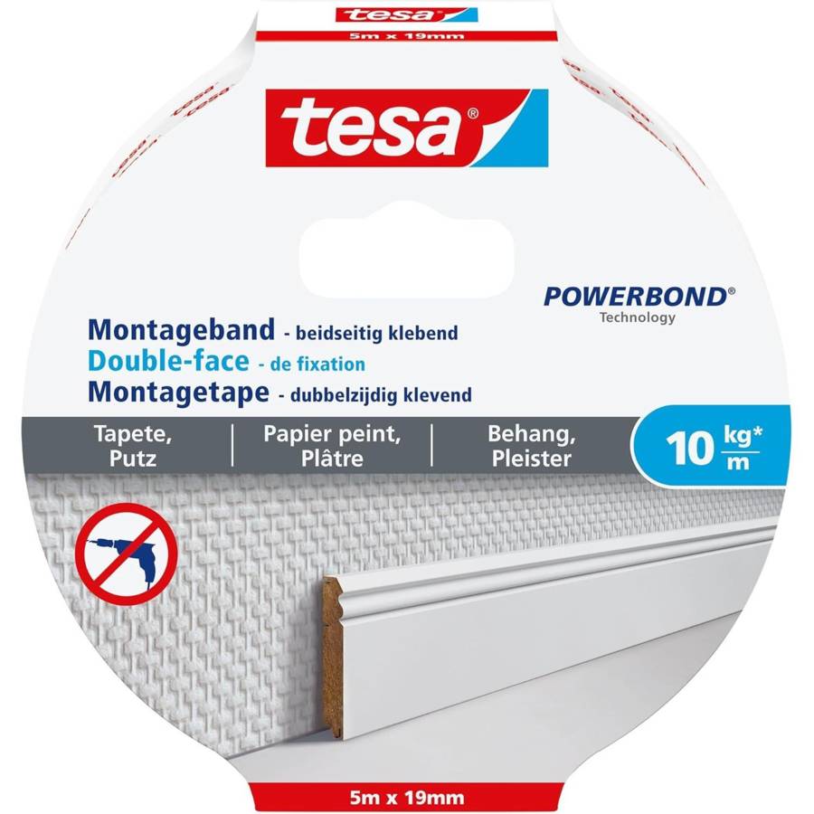 Double-face de fixation 5mx19mm pour mur peint et papier peint