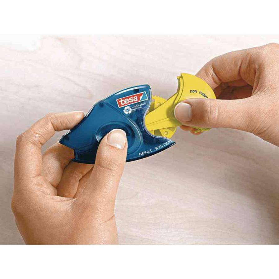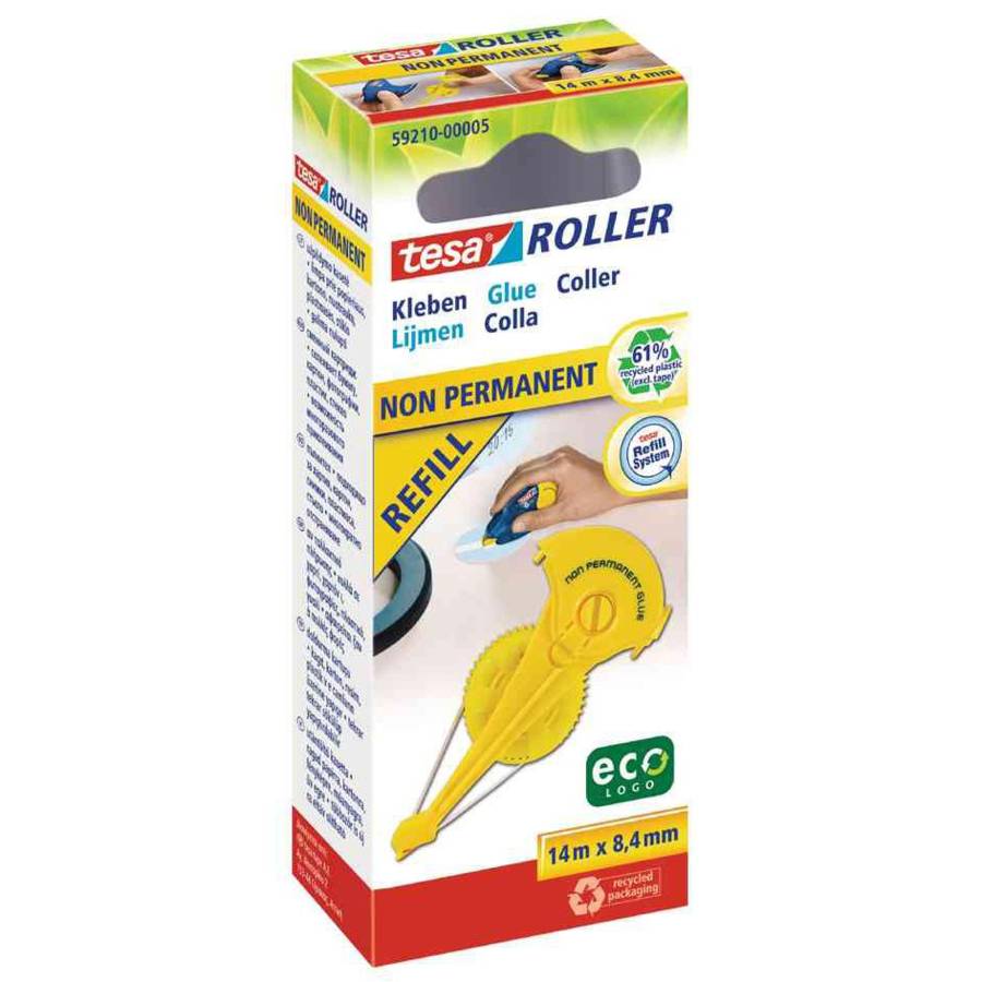 Tesa ecoLogo Refill cassette de colle nonPERMANENT GLUE 8,4 mm x 14 m, sans solvant, décollable plusieurs fois Cassette de recharge à 61% de plastique recyclé (sans ruban) Emballage en 100 cartons recyclés Couleur de la cassette: jaune