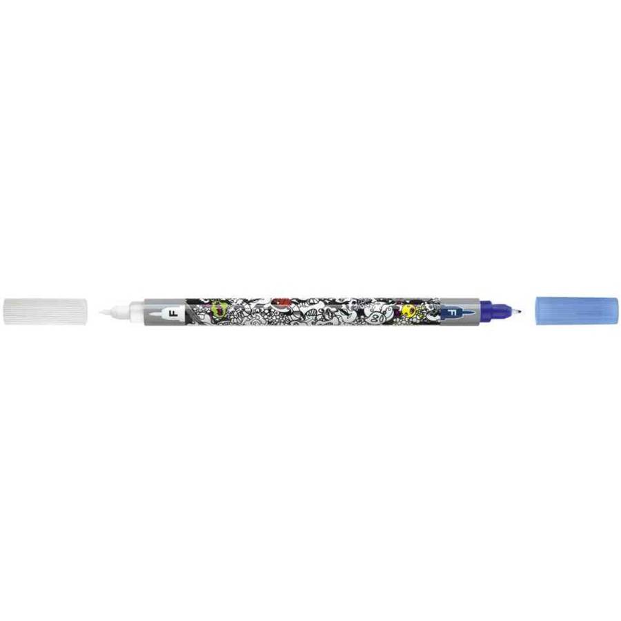 FABER-CASTELL Effaceur d'encre, fin, pointe ogive F Deux pointes Efface encre bleu royal Réécrit avec pointe de correction bleue Motifs métalliques en vogue (185550)