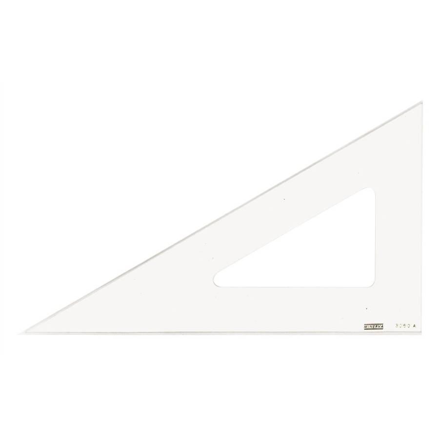 Equerre plate MINERVA de 30 cm, angle de 60°, transparente, bords antitache
