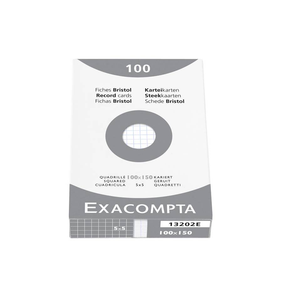 Exacompta 13202E Etui de 100 Fiches Bristol 210g/m² 100x150 mm Quadrillage 5X5 Non Perforées Blanc