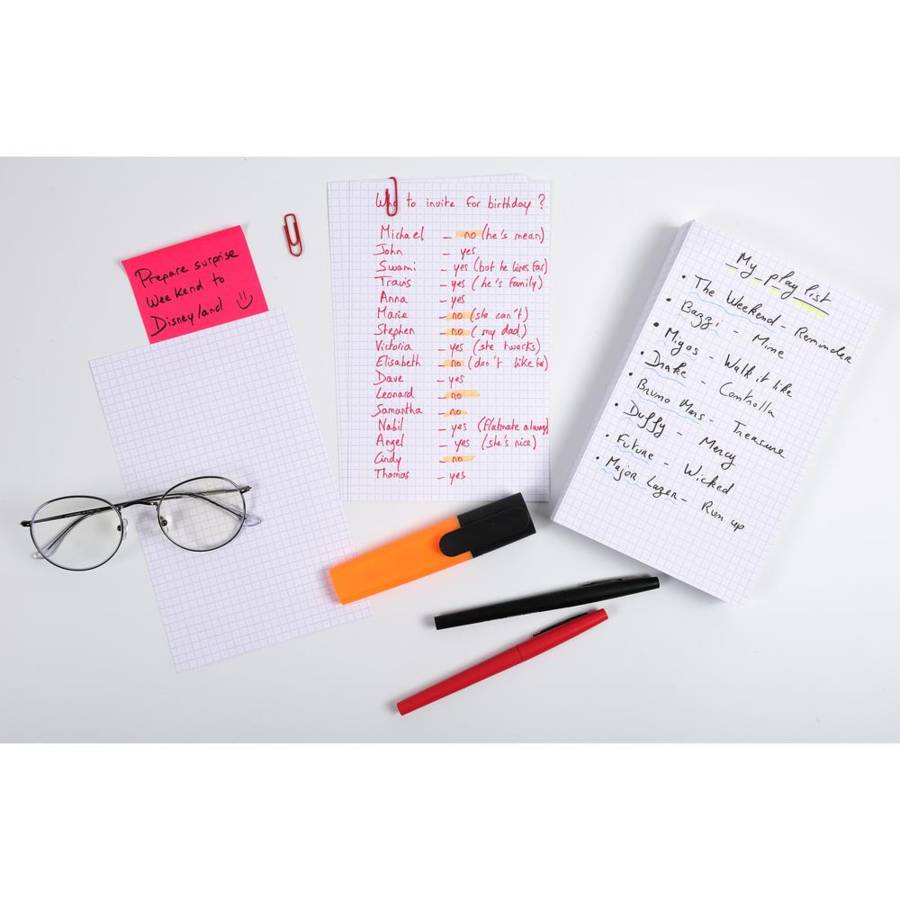 Étui de 100 fiches - bristol quadrillé 5x5 non perforé 125x200mm Haut standard de qualité et de régularité. Fabrication de qualité supérieure, à partir de pâte à papier issue de forêts gérées durablement et blanchie en PH neutre. Rigides et pratiques, les fiches bristol permettent un usage multiple et un confort d'écriture, elles conviendront parfaitement à vos travaux pratiques, vos fiches de notes… Étui coulissant pour protéger et conserver les fiches. Le type de fiches (quadrillées, unies, perforées, imprimées, couleurs assorties…) peut être facilement identifié grâce à la couleur du packaging.