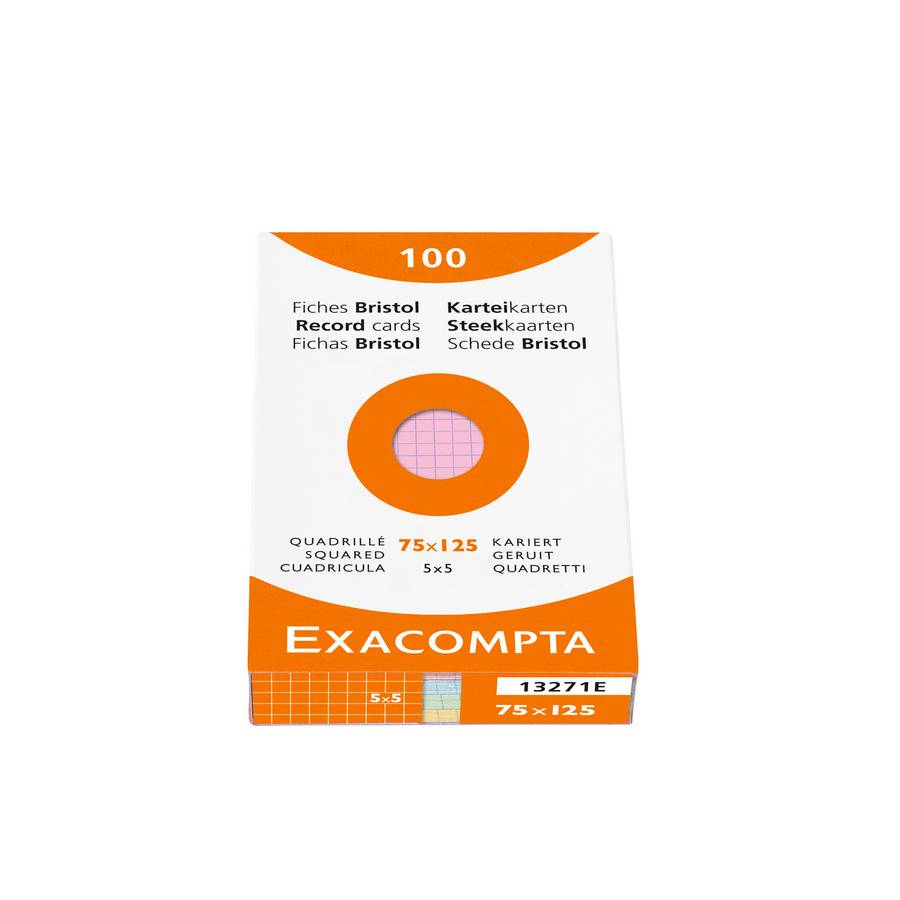 Étui de 100 fiches bristol quadrillé 5x5 non perforé 75x125mm Assorties