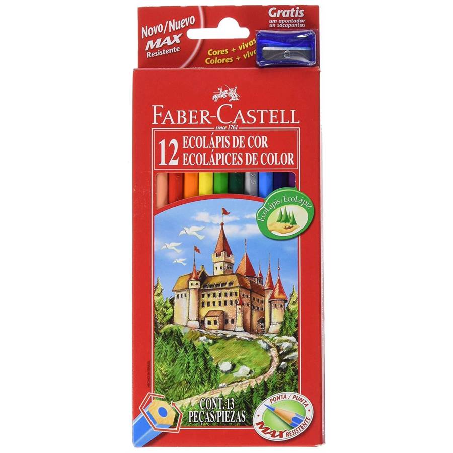 Etui de 12 Crayons de Couleur CASTLE Héxagonaux Assortis Avec Taille-Crayons