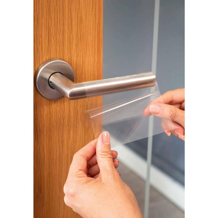 Voir plusEvitez une potentielle propagation de virus et bactéries ! Ce film antimicrobien est à appliquer sur les surfaces régulièrement touchées, tels que les poignées de portes, tiroirs, placards, comptoirs, tables et autres rangements. L'agent antimicrobien est actif 24h/24 et s'active dès le touché. Aucun entretien est nécessaire. Adhésif amovible pour une application facile sur vos supports. Important : Ce produit est une aide complémentaire dans toutes les démarches de nettoyage et de désinfection quotidiennes. Il ne guérit pas les personnes infectées par un virus et ne les empêche pas de le retransmettre par d'autres moyens. Respectez les gestes barrières pour une meilleure protection contre tout type de virus.