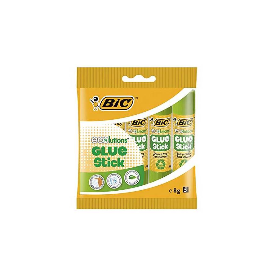 5 Sticks 8gr de colles Ecolutions- Colle le papier et le carton - Stick 8 grammes - lavable - sans solvant - Tube en plastique 100%* recyclé