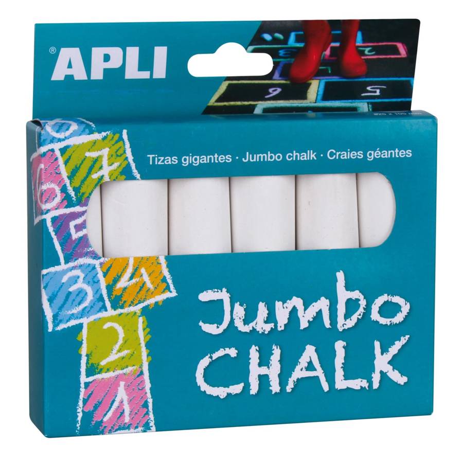 Craies rondes jumbo blanches. Chaque paquet contient 6 craies de Ø 25 x 105 mm. Craies fabriquées avec du sulfate de calcium à faible teneur en résidus, sans poudre. Idéales pour écrire, dessiner et colorier sur les tableaux et revêtements. Conviennent à un usage scolaire. Idéales pour écrire et dessiner sur le sol, les trottoirs. Ne tâche pas, s'efface facilement avec de l'eau