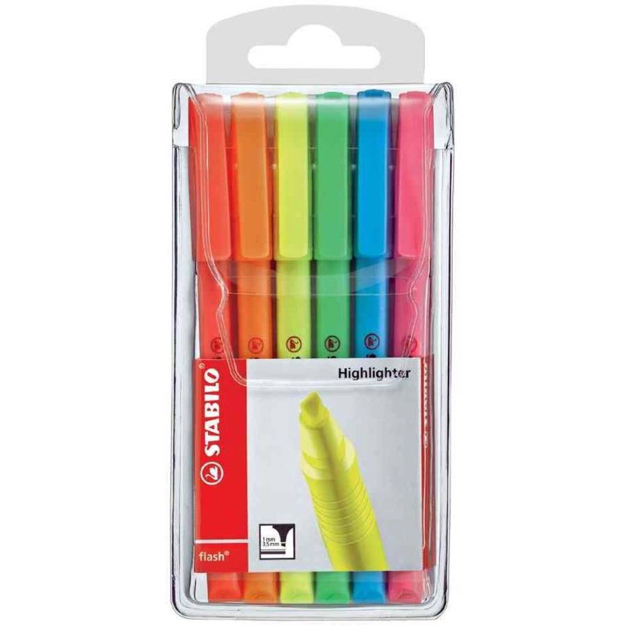 STABILO Etui de 6 Surligneurs de poche Flash Pointe Biseautée 1 - 3,5 mm