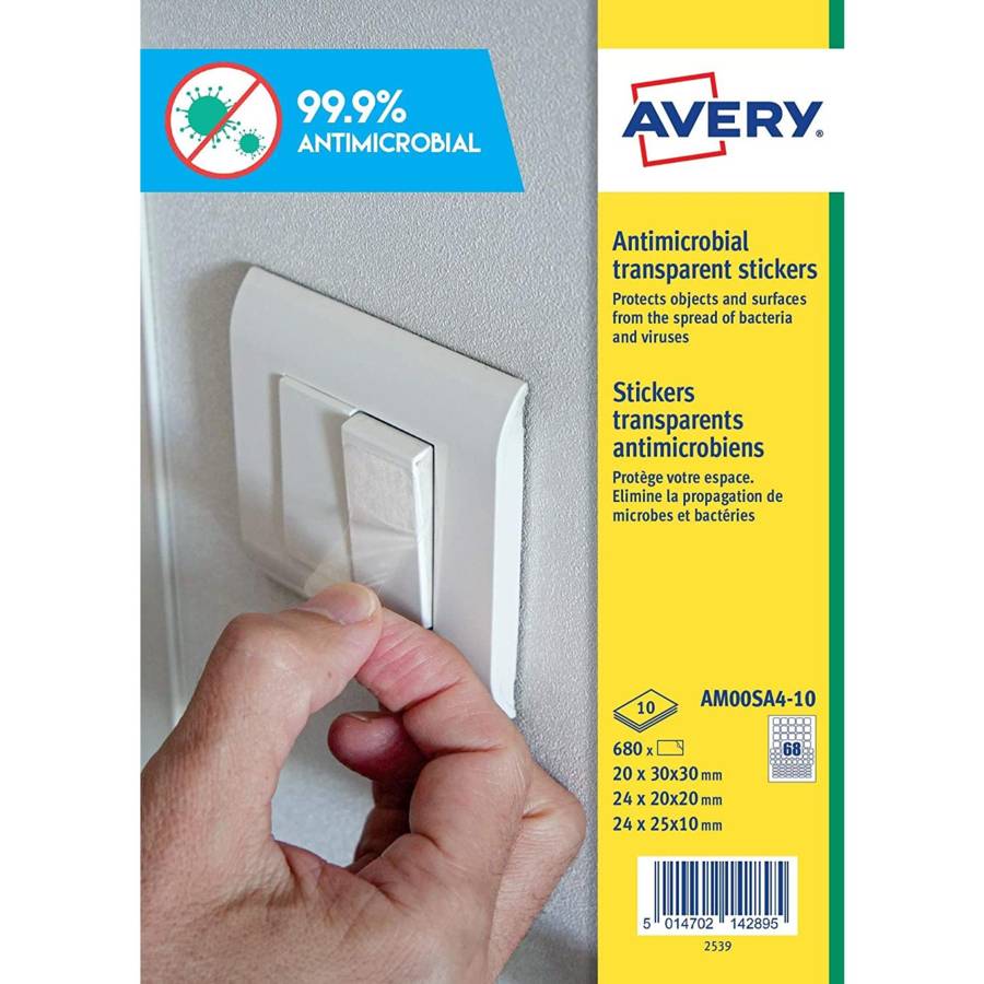 Etui de 680 Stickers carré antimicrobien transparent format assorti