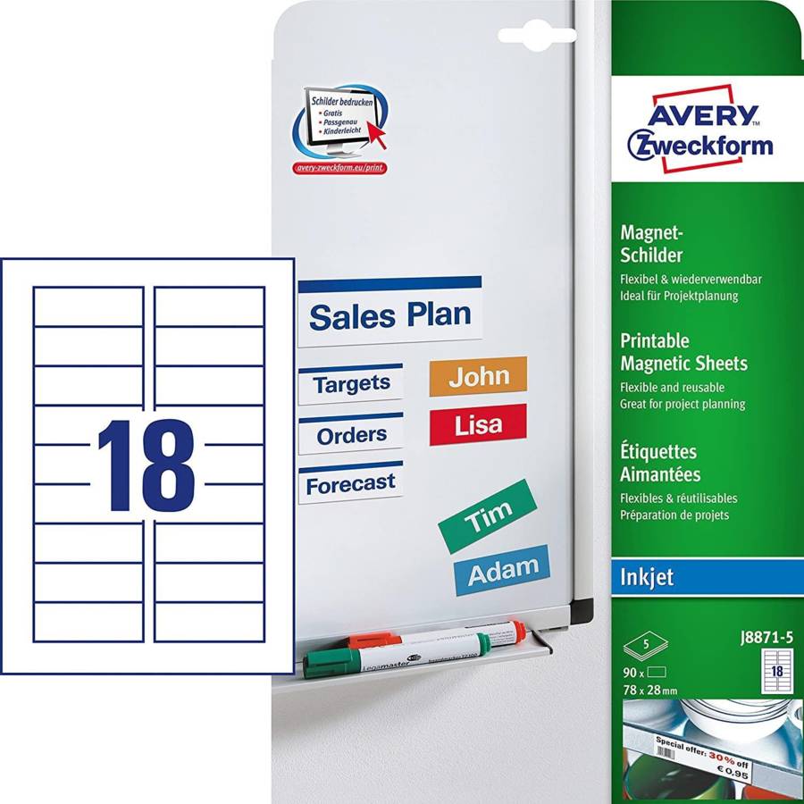 Etui de 90 étiquettes magnétiques Jet d'encre Blanc 78 x 28 mm