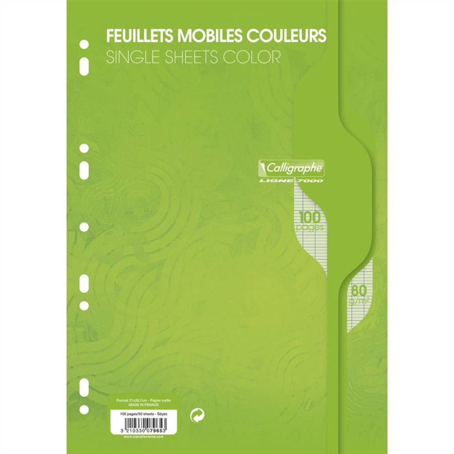 Calligraphe Feuillets mobiles 21x29,7 100p(50F) séyès 80g Vert