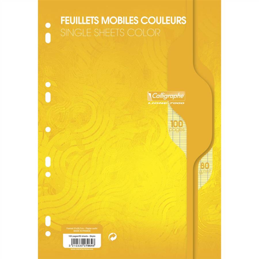 Feuillets mobiles s/film 21x29,7 jaune 100p séyès 80g Pack De 50