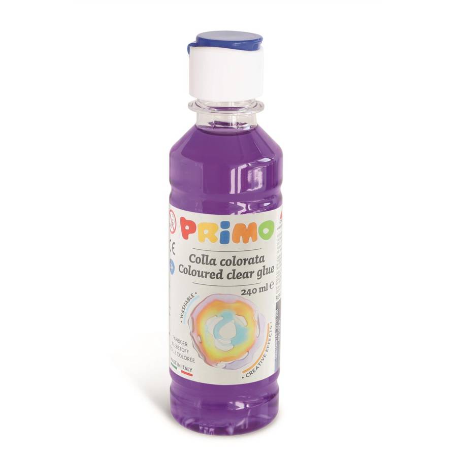 Flacon 240 ml Colle colorée à base d'eau, bouchon doseur violet 400 La colle à l'eau colorée est transparente et brillante, sans solvant et sans gluten, facile à laver. Elle est disponible en flacon PET de 240 ml avec un bouchon doseur et un bouchon de sécurité à retirer avant utilisation. Idéal pour faire du slime mais aussi pour de merveilleux effets créatifs, on peut l'utiliser comme vernis coloré ou seule pour une œuvre d'art brillante ! Elle peut être utilisée sur papier et carton en raison de son fort pouvoir adhésif mais aussi sur différents matériaux tels que les serviettes en papier pour permettre aux jeunes artistes d'expérimenter les techniques de découpage.