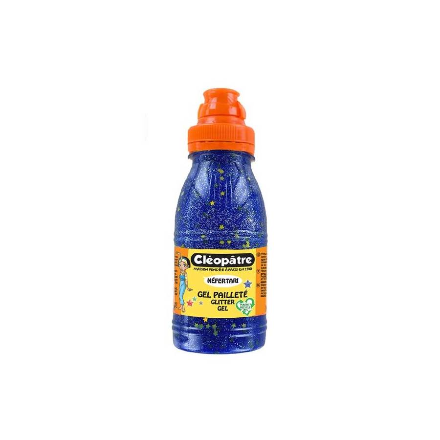 - Le Gel pailleté Cléopâtre Night est un gel coloré bleu à base d'eau qui apporte également un effet scintillant grâce à la présence de nombreuses paillettes et de petits éléments décoratifs phosphorescents en forme d'étoiles.