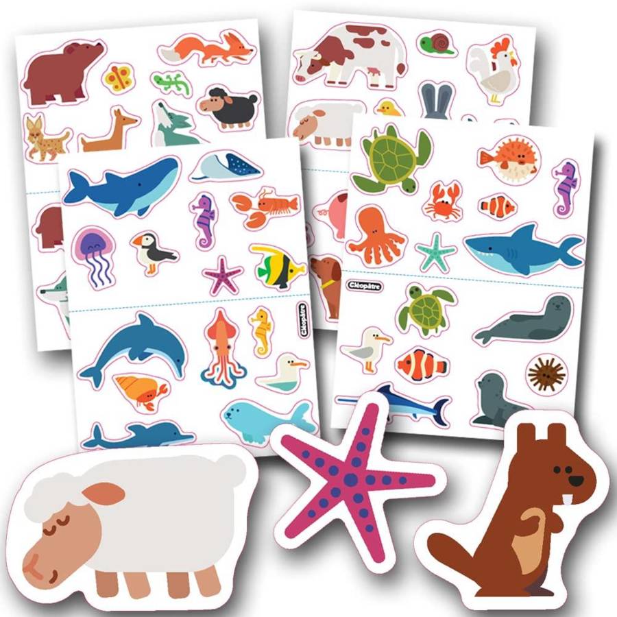 Voir plusMAXI Gommettes permettant à l'enfant de se familiariser avec les animaux que l'on peut retrouver à la montagne, à la prairie, à la mer et dans les fonds marins Composé de 4 planches de 15 gommettes aux motifs et tailles assorties : loups, ours, renard, mouton, vache, dauphin, tortue, crabe, requin, baleine. Les avantages de nos gommettes : Idéales pour l'apprentissage des animaux, elles permettront de réaliser différentes créations, au gré de l'imagination des enfants. Leur taille MAXI permet une préhension encore plus facile par les plus petits. Les gommettes peuvent être collées sur différents supports : papier, bois, carton, vitre, plastique... Et comme l'erreur fait partie de l'apprentissage, nos gommettes sont repositionnables et donc idéales pour les enfants dès leur plus jeune âge, qui pourront les coller et les recoller plusieurs fois. Les bienfaits pour l'enfant : Les gommettes permettent de développer la créativité et la motricité fine de l'enfant lors du collage de la gommette. Ces gommettes colorées permettront à l'enfant de réaliser des collages ludiques ou d'embellir ses dessins, en laissant libre court à son imagination. Elles leur permettront d'apprendre à nommer et à reconnaître les animaux de façon ludique et créative. Composition : 4 planches de maxi gommettes (15 gommettes par planche, soit 60 gommettes).