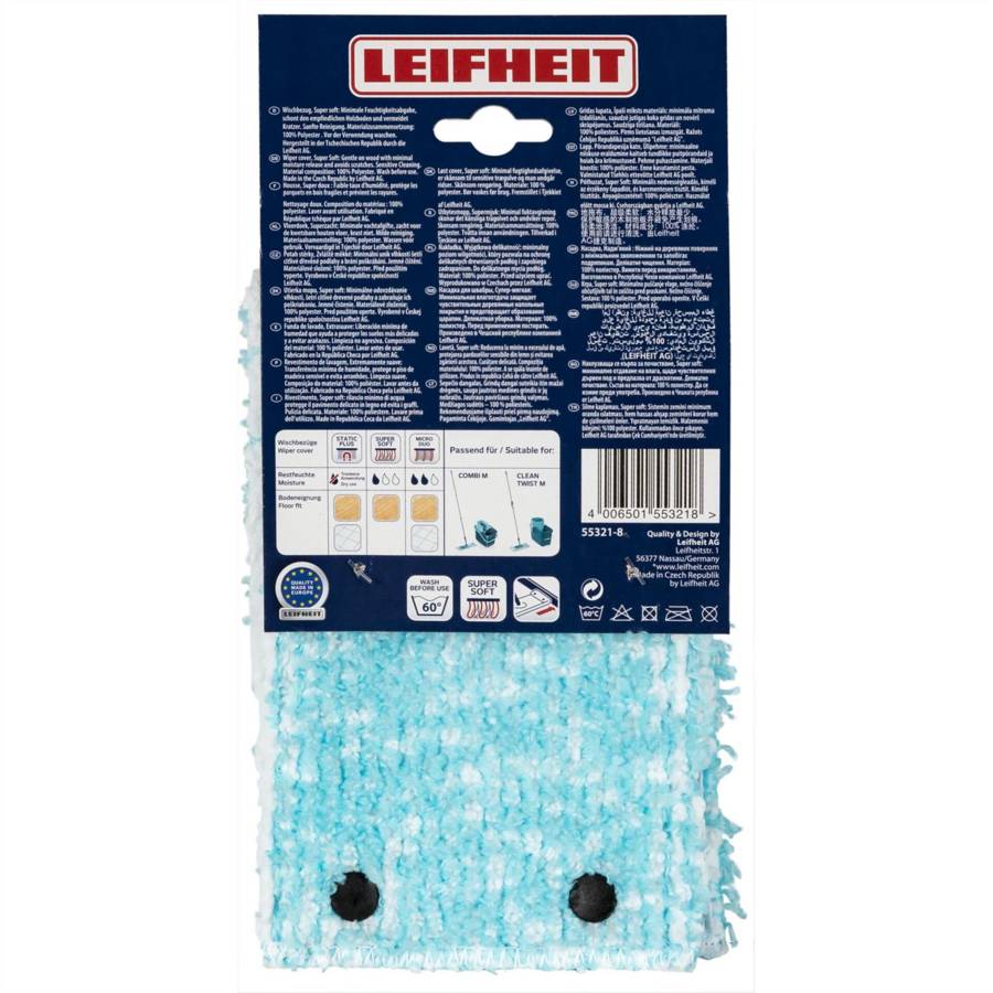 Voir plusSpéciale sols délicats - La moppe microfibre est particulièrement adaptée au nettoyage de sols très fragiles comme le stratifié, le liège ou le parquet Absorption d'eau minimale - Grâce à l'absorption d'eau minimale des fibres, la housse pour balai permet un entretien en douceur. Elle est parfaite pour les sols fragiles, sensibles à l‘humidité Housse de rechange - La serpillière microfibre, de largeur 33 cm, est adaptée pour le Clean Twist System M de Leifheit. Elle est facile et rapide à clipser grâce à ses boutons pression Lavable en machine - Après usage, la housse de nettoyage peut être lavée en machine à 60 °C, pour que vous ayez toujours un accessoire propre et prêt à l'emploi Livraison - Leifheit Housse Clean Twist M extra soft, accessoire ménage fibres bouclées polyester pour sols fragiles, 33cm, housse ménage amovible & lavable à 60 °C, numéro d'article : 55321