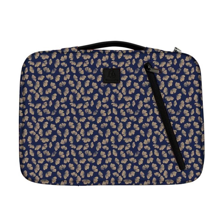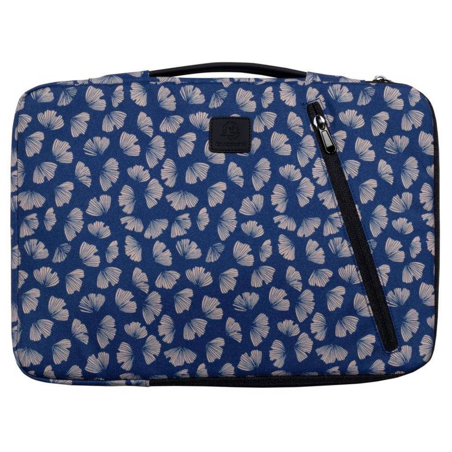 Petite poche à l'avant et fermeture zippée sur 2 cotés seulement pour éviter de faire tomber l'ordinateur en ouvrant la housse trop rapidement.