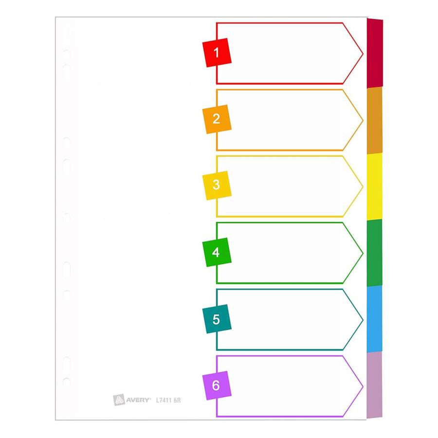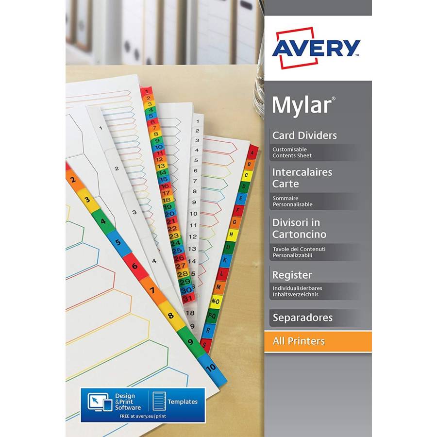 AVERY 5194501 Touches et perforations renforcées, Respectueux de l'environnement, Fournis avec sommaire de couleur, Carte 150g/m2 recyclable et certifié FSC (issue de forêts gérées durablement), Compatibles toutes technologies d'impression, Format A4