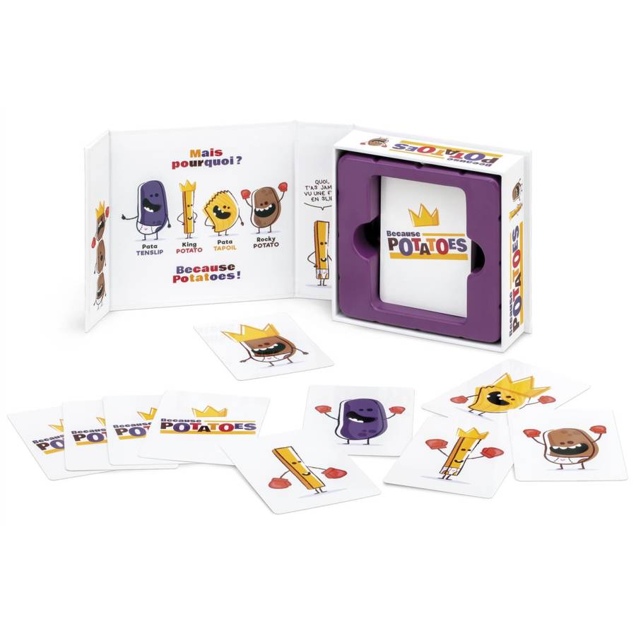 Un jeu de 64 patates à partager en famille : Chaque patate jouée doit avoir un point en commun avec la carte posée en dernier sur la table. Le gagnant est celui qui pose la patate qui a un point commun avec la précédent.