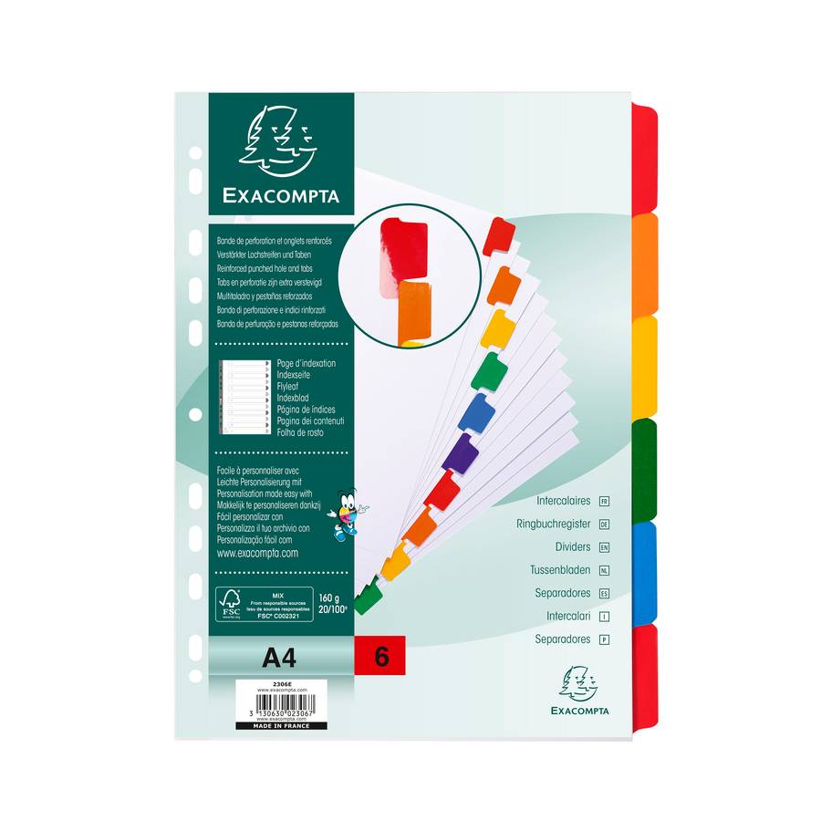 EXACOMPTA Jeu d'intercalaire 6 positions en carte blanche 170g, Onglets Mylar®. Format A4.