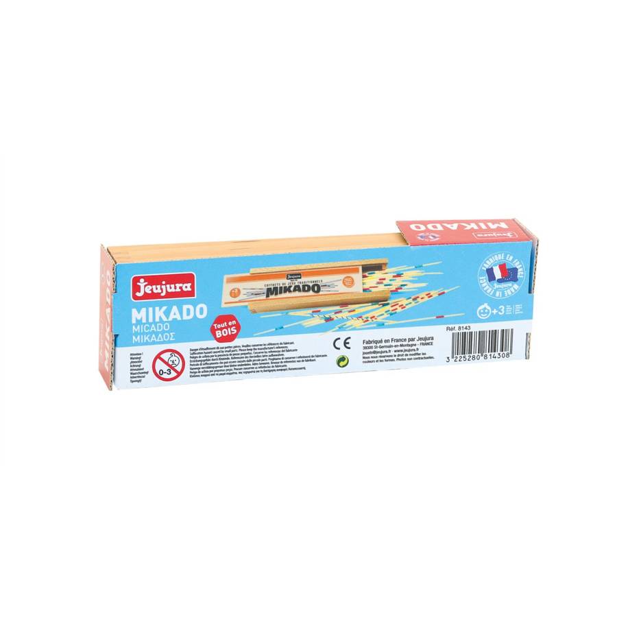 Jeu de société de patience et d'adresse pour toute la famille. La règle est simple : il suffit de retirer une à une les baguettes sans faire bouger les autres. Jeu de Mikado en bois – coffret en bois : 41 baguettes de 18 cm - Règle du jeu. Dimensions du coffret en bois sérigraphié : 23 x 7 x 3.5 cm. A partir de 3 ans
