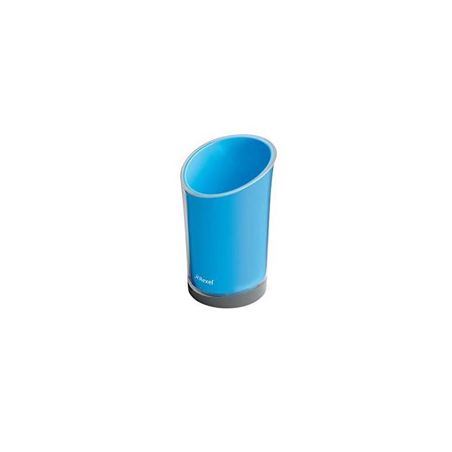 Rexel Joy 2104029 Pot à crayons bleu Finition très brillante et forme arrondie élégante Devant incliné pour faciliter l'accès Socle stable pour empêcher tout basculement