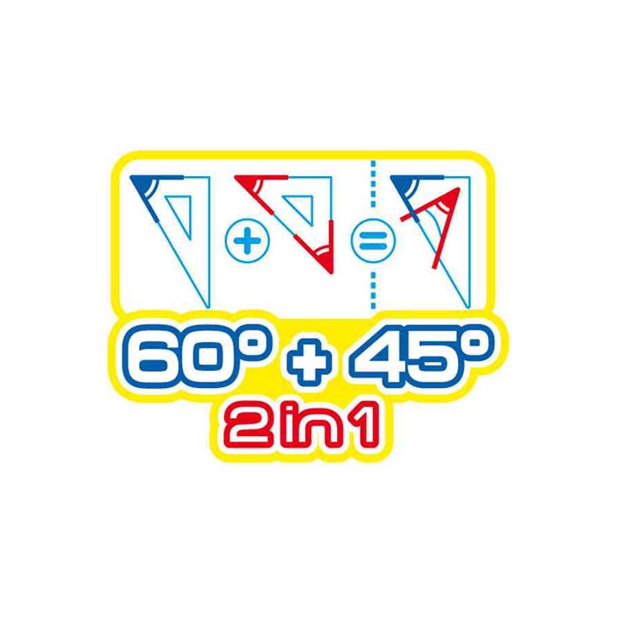 Maped Kit de géométrie Flex, incassable, 3 pièces, 4 fonctions, en plastique, graduation en couleur résistante aux UV, contebu: chaque 1 x règle 300 mm, équerre 2 in 1: 45 degré et 60 degré 210 mm, rapporteur 180 degré 120 mm, la livraison s'effectue assortie dans les couleurs bleu et vert transparent - le choix d'uns couleur spéciale n'est pas
