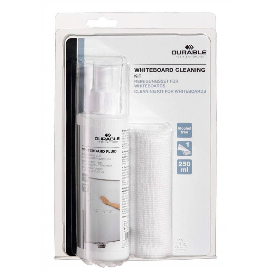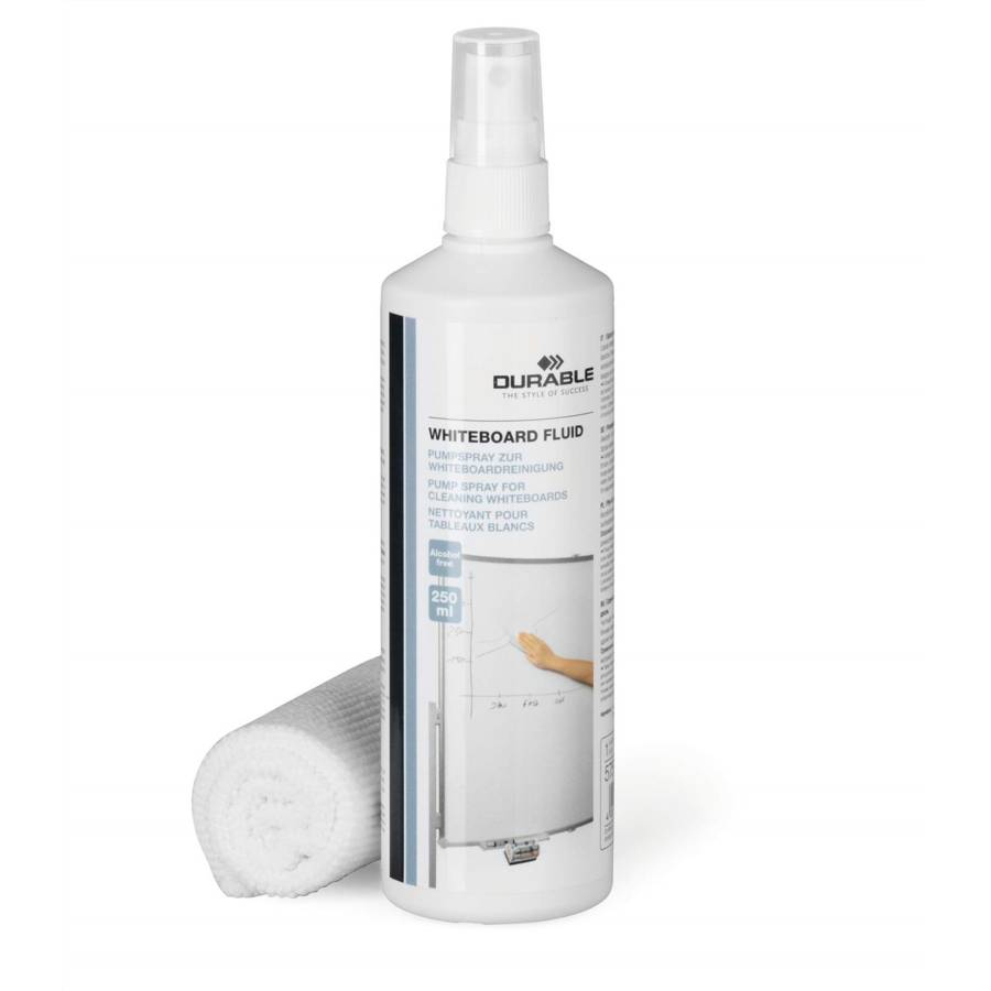 DURABLE Kit de nettoyage pour tableau blanc WHITEBOARD CLEAN Chiffon en microfibre: 250 x 250 mm contenu: 1 x nettoyant pour tableau blanc spray 250 ml + 1 x chiffon microfibre (5833-00)