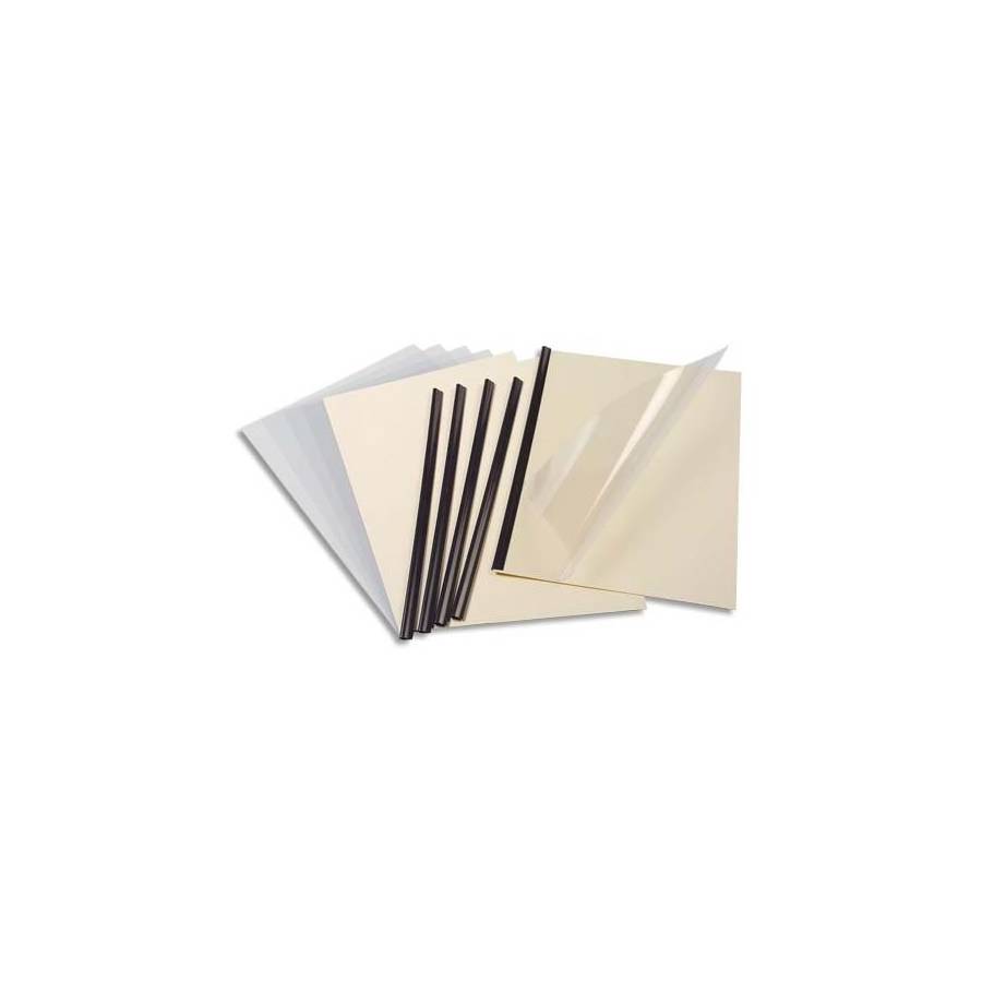 Le kit idéal "tout inclus" pour relier facilement ses dossiers ou ses présentations de format A4. Contient : -5 baguettes à relier noires de 3mm. -5 plats A4 en PVC cristal 20/100e (pour la couverture du dossier). -5 plats A4 en carte 240g ivoire (pour l'arrière du dossier). Permet de relier jusqu'à 30 feuilles de papier 80g / m2.