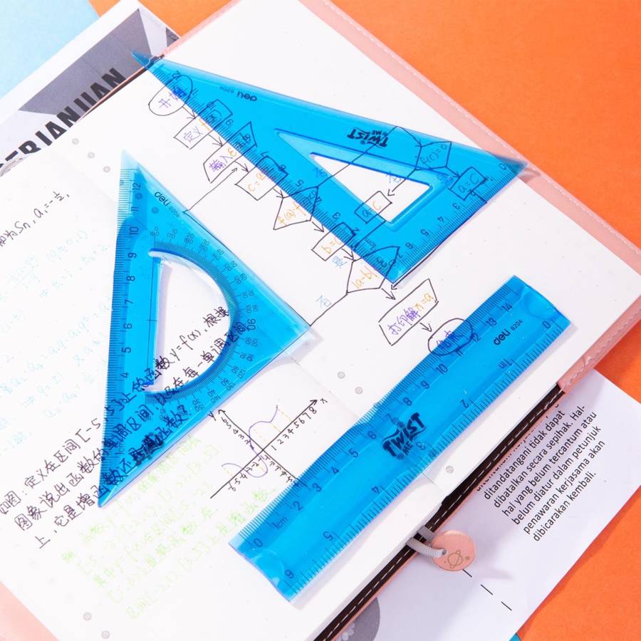 - Kit traçage flexible Eco PVC 3 accessoires en bleu translucide: 1 règle de 15 cm et 2 équerres