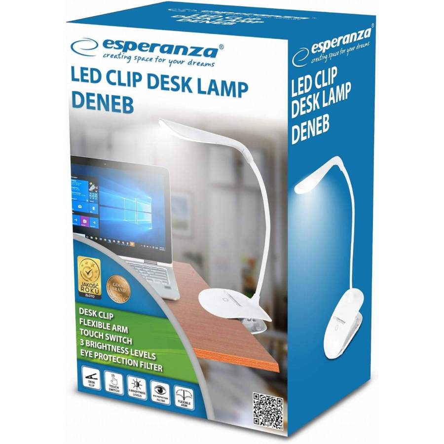 Lampe de Bureau à Clipser DENEB LED Cou Flexible 3 Niveaux de Variation Blanc
