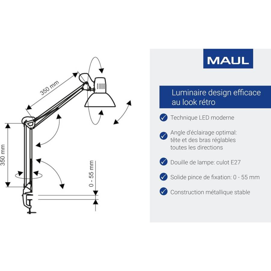 MAUL Lampe de bureau MAULstudy, avec pince, blanc