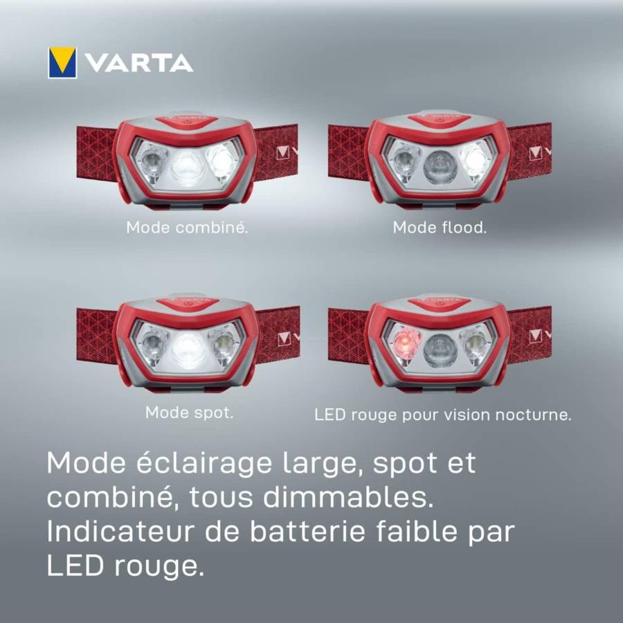 VARTA Lampe frontale LED "Outdoor Sports H20 Pro",rouge/gris