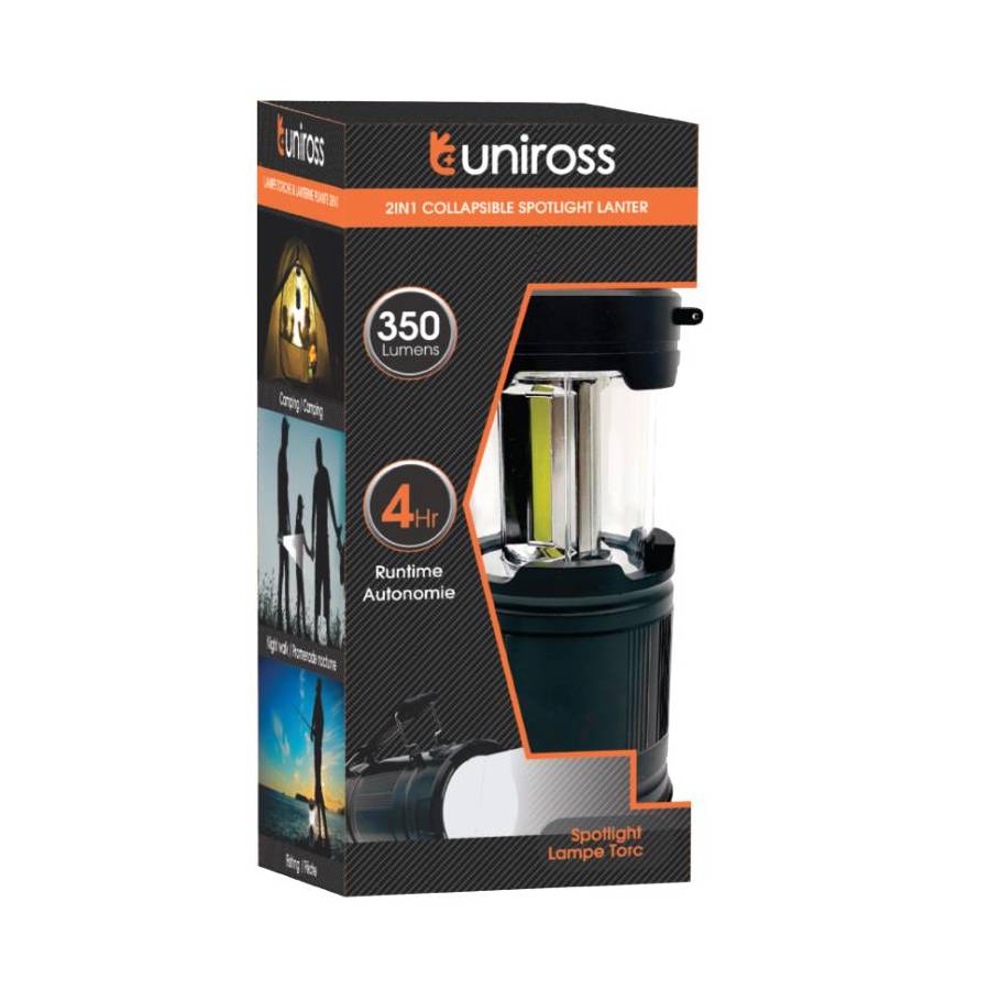 Lanterne compacte avec un mécanisme télescopique pour régler facilement l'intensité lumineuse Fonctionnalités avancées Couverture lumineuse à 360° Réglage télescopique de l'intensité Poids léger Idéal pour Pêche, Travaux d'urgence, Marche de nuit, Camping Specifications Lumen : 350L Input Source : 3xAA (Not Included) Lamp(s) : 9 Super Bright LED LED Colour : White LED Life : 20 Year(s) Runtime : up to 4hr Material : ABS Colour : Black Waterproof :IP54