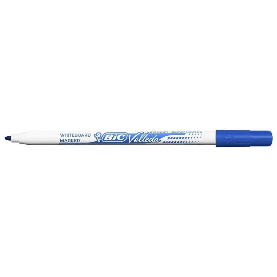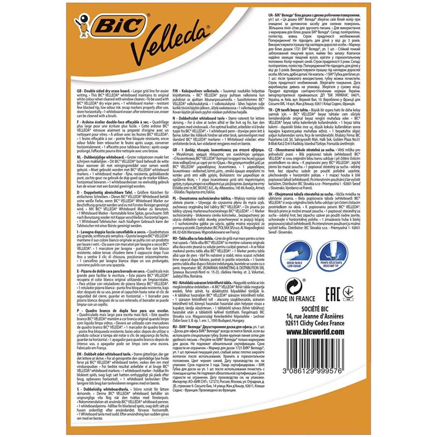 BIC Ardoise effaçable blanche 19 x 26 cm Double face Unie / Quadrillée Séyes Avec un feutre fin bleu BIC® Velleda 1721 et une effaçette clipé