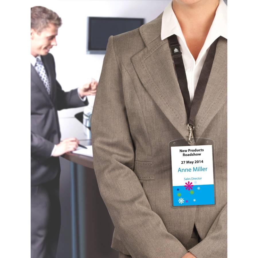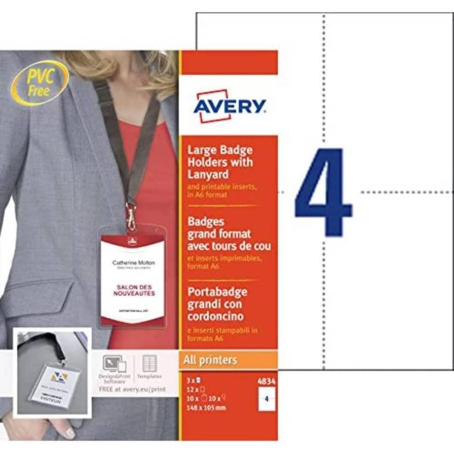 AVERY Paquet de 10 pochettes badges format A6 transparentes + 12 inserts imprimables A4 et 10 lacets noir