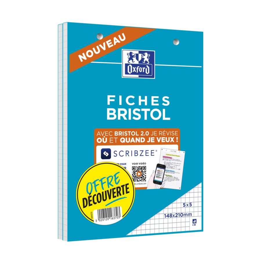 Lot de 2 blocs de 30 fiches bristol 148X210 perforées Q5X5 blanc