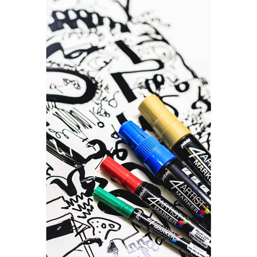 Le 4ARTIST MARKER est le marqueur peinture base huile de Pébéo. Multi techniques et extrêmement polyvalent, il est l'outil contemporain de peinture par excellence! 4 tailles de mèches et 18 couleurs vont sont proposées ! Couleurs brillantes, opaques - fortement pigmentées Finition brillante - effet peinture matière - séchage rapide et homogène. La couleur peut être retravaillée après séchage pour obtenir des nuances, des dégradés et des estompages. Excellent tendu du film sec pour les aplats. Fidélité de la couleur humide/ sèche Polyvalence d'application: sur toile, papier, plastique, bois, métaux et en finition de nombreuses peintures acryliques, huile, peintures base huile