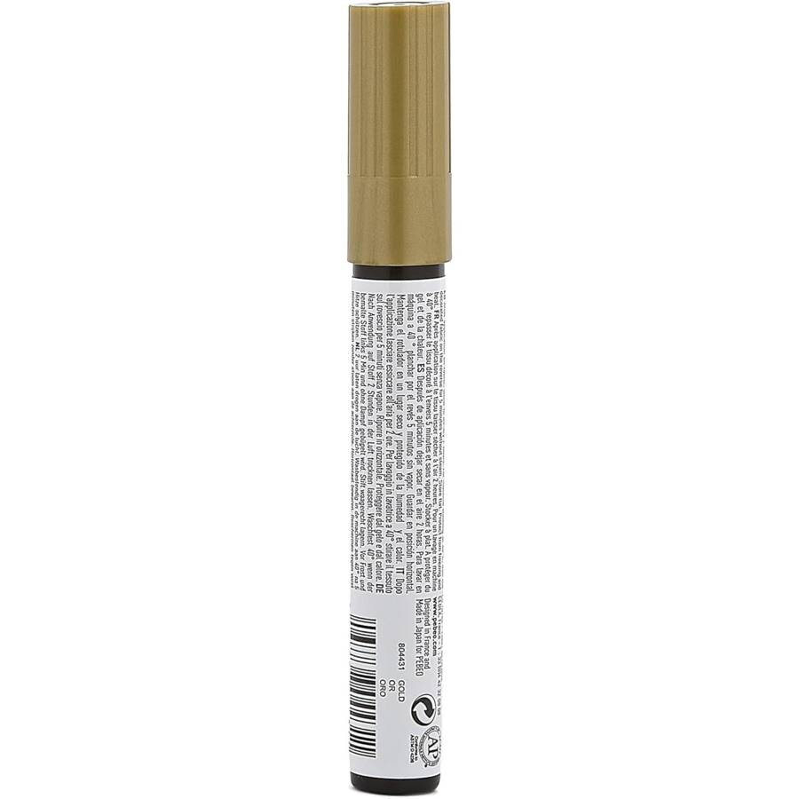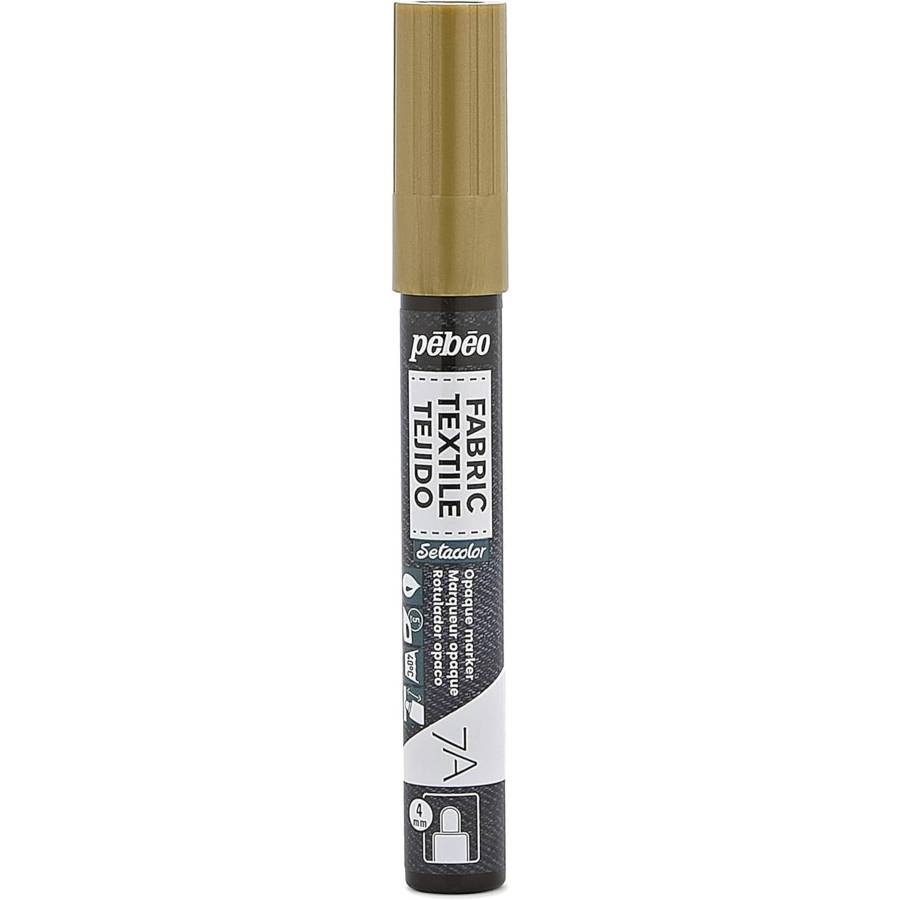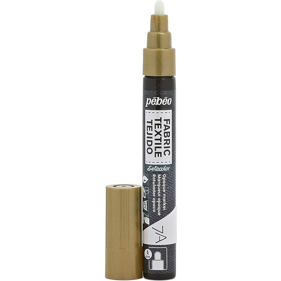7A MARQUEUR OPAQUE 4MM OR Couleurs opaques très mates Pointe ronde 4mm adaptée à l'utilisation sur textile Application sur la plupart des tissus préalablement laves, fins ou épais, foncés ou clairs. Fixation des couleurs 5 minutes au fer à repasser, position coton sans vapeur, sur l'envers de l'étoffe. Entretien des supports décorés: 48 heures après fixation, les couleurs résistent au lavage à la main et/ou lavage en machine à 40°C.