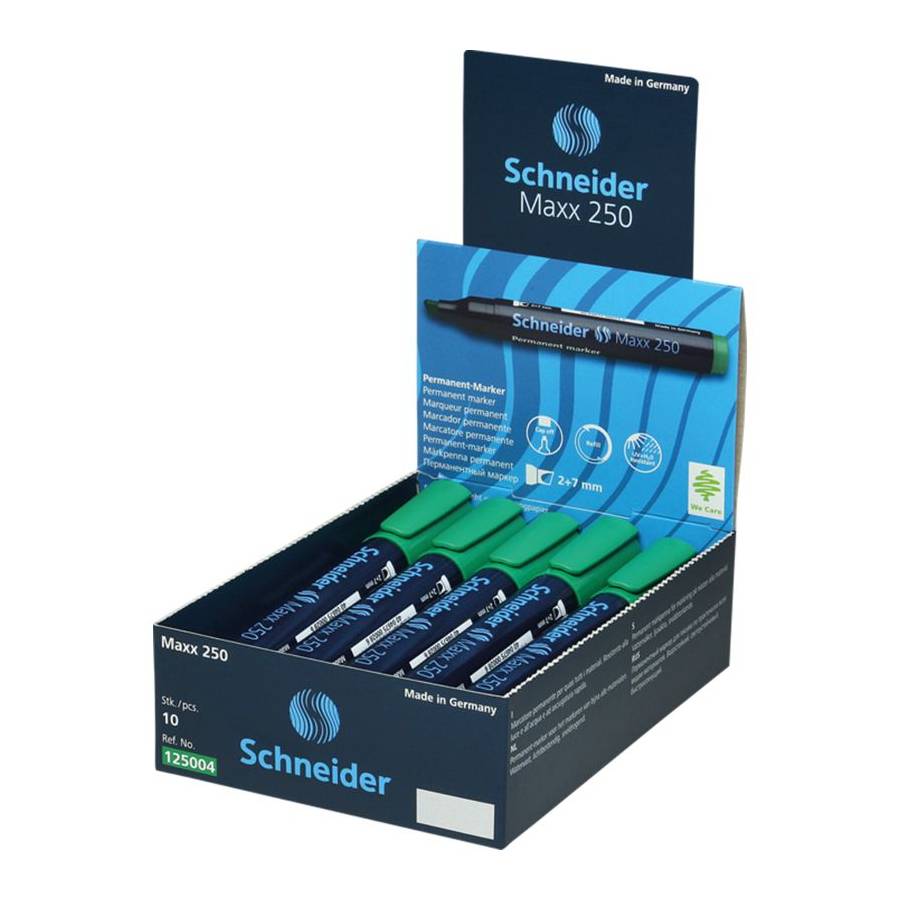 Marqueur permanent avec pointe biseautée, épaisseur de trait 2+7 mm. Couleur d'encre verte. *Le corps est en plastique recyclé à 95%. Ecrit sur carton, papier, plastique, verre, métal, bois, et autres matériaux. L'encre sèche rapidement, est résistant á l'eau et à la lumière. Le modèle cap-off peut rester ouvert pendant 2-3 jours sans sécher. L'encre est faible en odeur, sans toluène et xylène. La nouvelle forme plus longue et fine contient plus d´encre pour une durée de marquage maximale. Le marqueur a un capuchon avec clip pratique et est rechargeable avec le flacon d´encre Maxx 669 refill station.